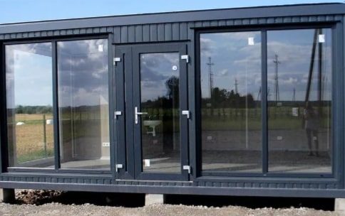 Наша продукция имеет все необходимые сертификаты и соответствует ГОСТ. Мы стремимся предложить конкурентоспособные цены, вы можете приобрести Модульное здание МЗ-34 из двух евромодулей с панорамными окнами по цене 2 247 000 руб.